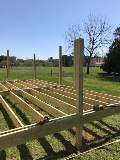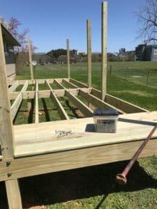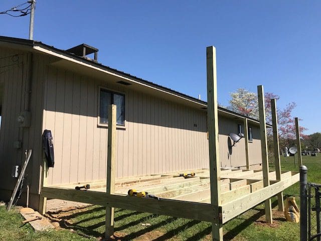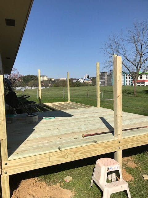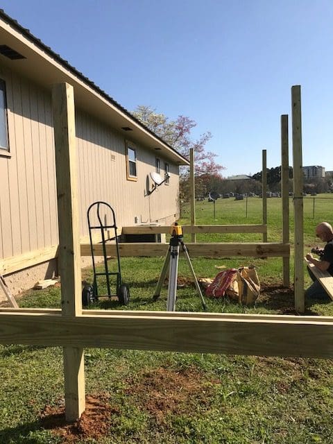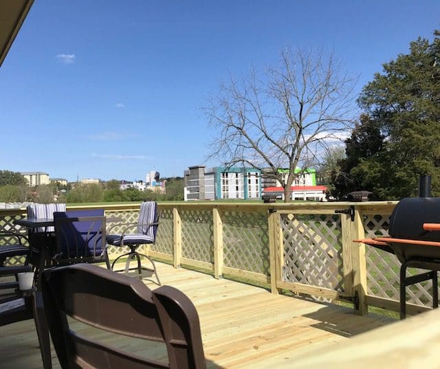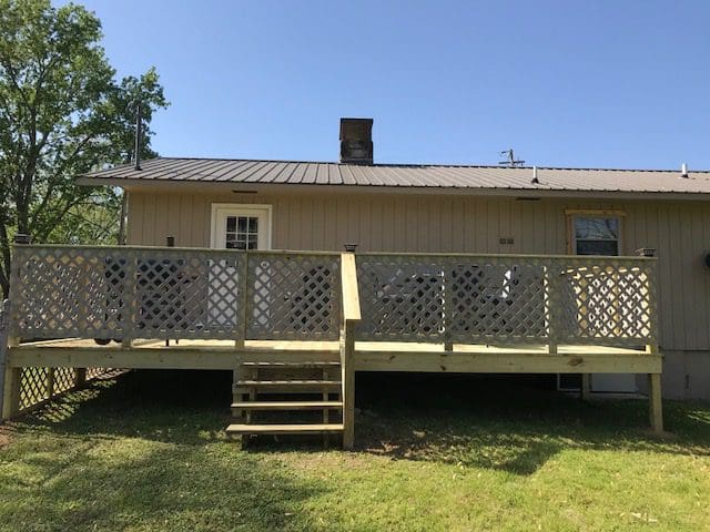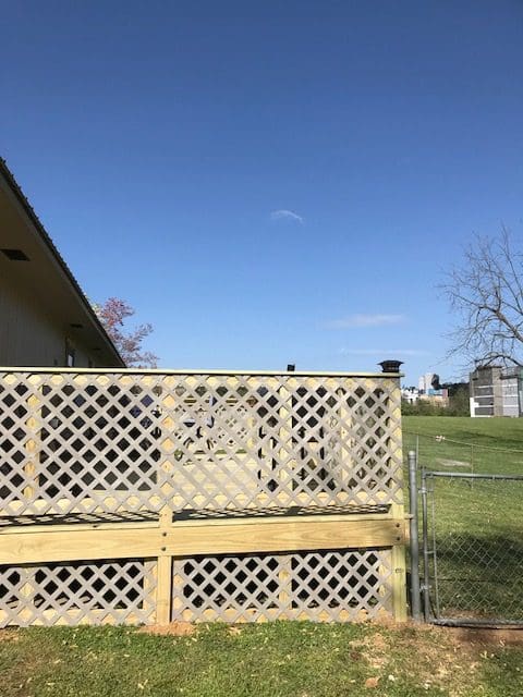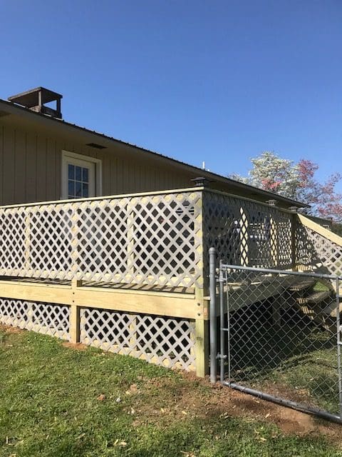 The 12’x22′ deck includes colored vinyl lattice in the Clay color option, which matches the house nicely. It doesn’t need painting and it will not rot, making for quick and easy installation and maintenance. It’s a little pricy, but will be worth it in the long term.