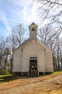Near the top of the mountain on Rich Mountain Road, there is a wide clearing to the right where you can see Cades Cove Methodist Church in the valley below. It’s a popular spot for photographers.