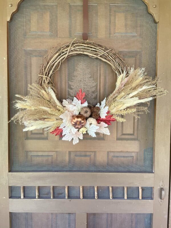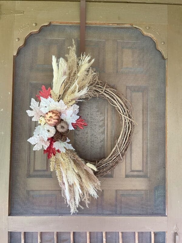- Add Natural Dried Florals & Grasses: Tuck textured grasses and florals into the grapevine or whatever wreath base you use.