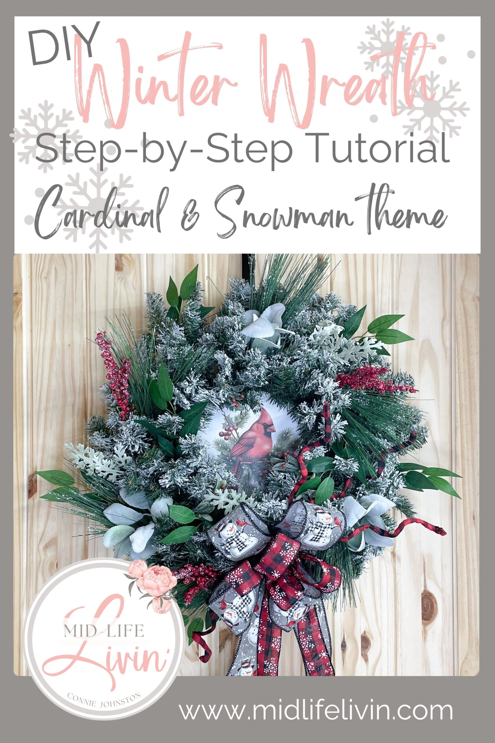 Easy DIY Winter Cardinal and Snowman Flocked Pine Wreath
