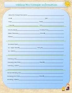Fill out the info for your camping journal and then make a copy to keep at home, at the office, and in your safe.