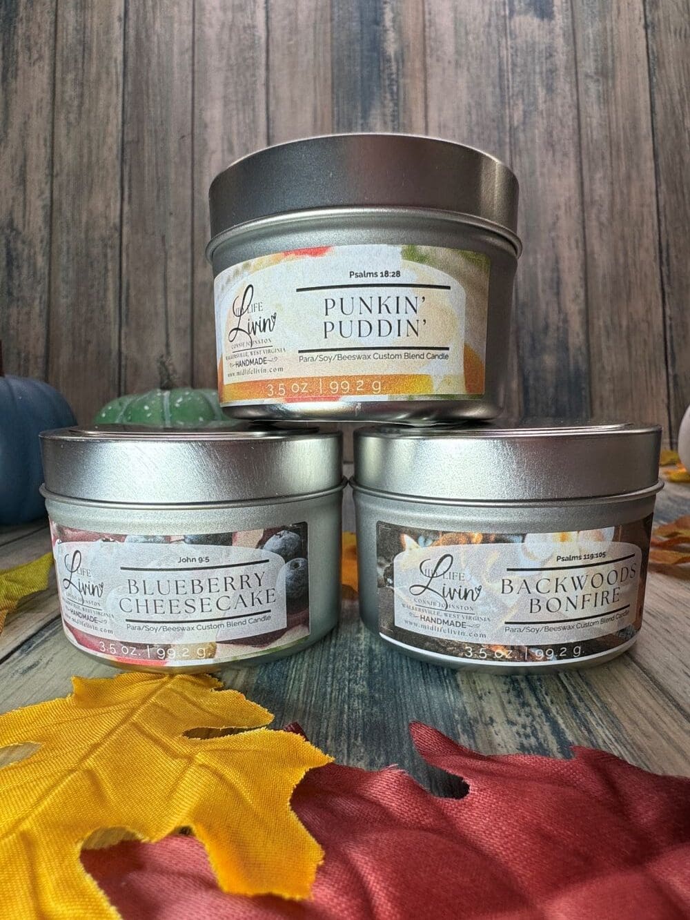 Our candles aren’t just about the fragrance—they’re a stylish addition to any home. Each label is thoughtfully designed with graphics that mimic the essence of the fragrance and the scent name, creating a cohesive and visually appealing product. To add a personal and meaningful touch, every label includes a scripture verse, bringing inspiration into your space. Whether in tin or amber jar packaging, these candles are as beautiful to display as they are to enjoy.