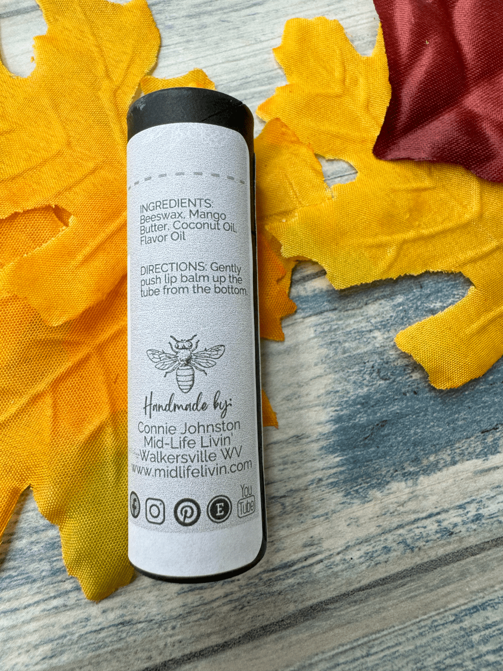 Directions: Gently push the lip balm up the tube from the bottom. Apply to lips as needed to keep them moisturized and protected.
