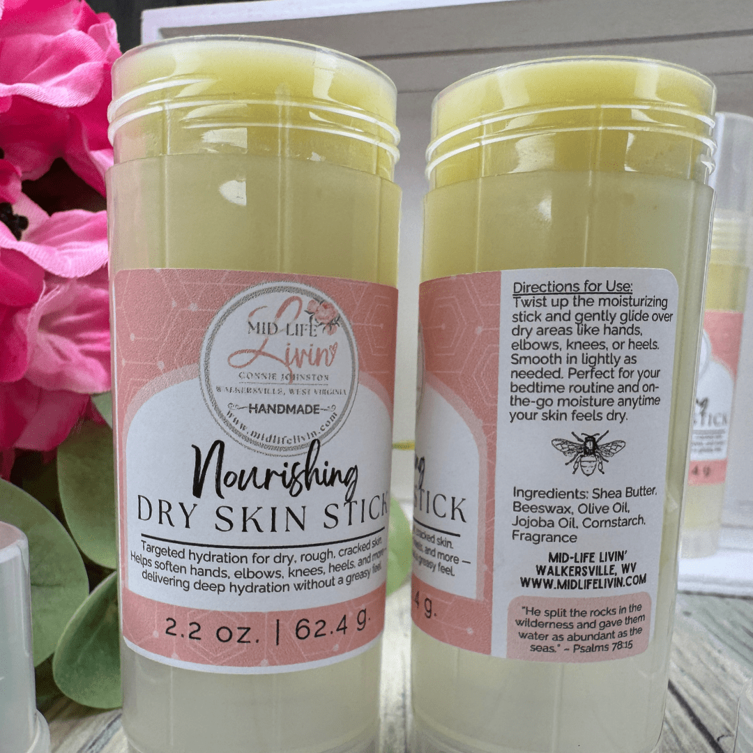 Say goodbye to dry, cracked skin with our Nourishing Dry Skin Stick, specially made for women who want soft, healthy skin without the mess. This ultra-hydrating solid lotion stick is perfect for dry hands, rough heels, elbows, and hardworking gardener hands.